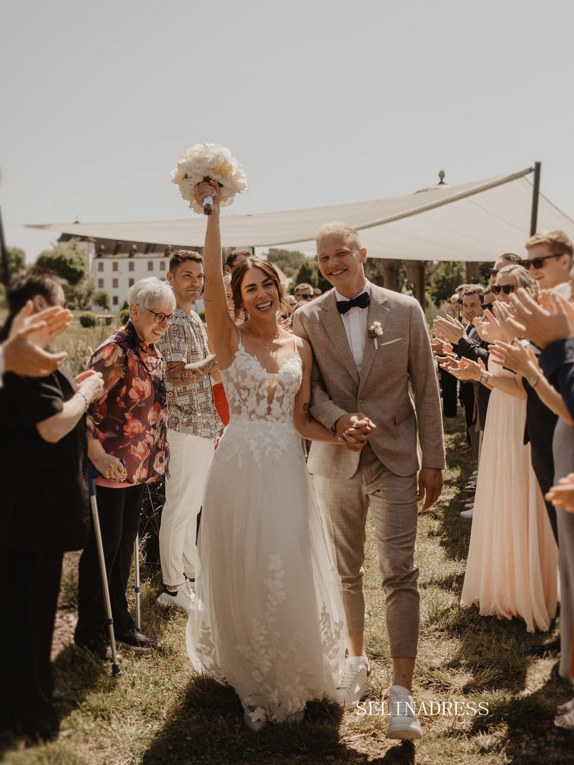 This was exactly what she wanted. The dress is a little heavy, but overall perfect. We measured her and went with the measurements that best fit her bust size. Selinadress was helpful in making sure we had the right size! It took a little longer to get, but worth the wait just order a lot sooner than you need!
