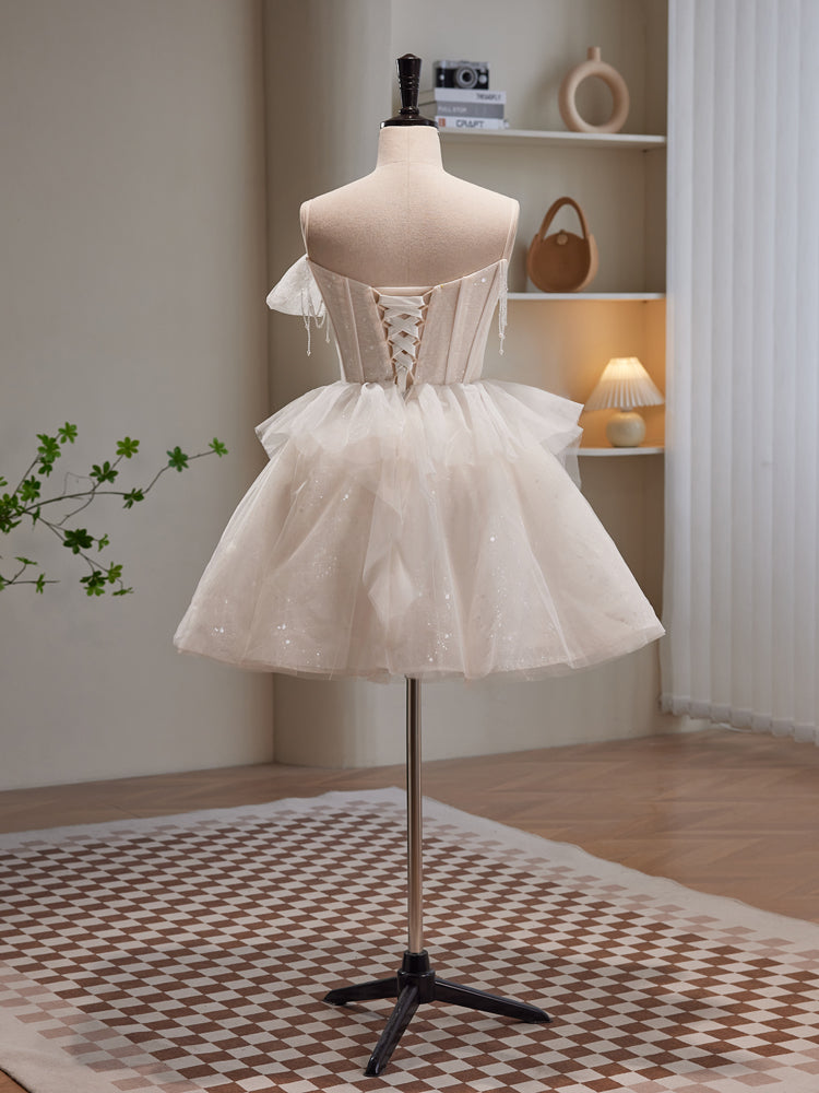 A-line Strapless Ivory Short Prom Dress Beaded Homecoming Dress lop251