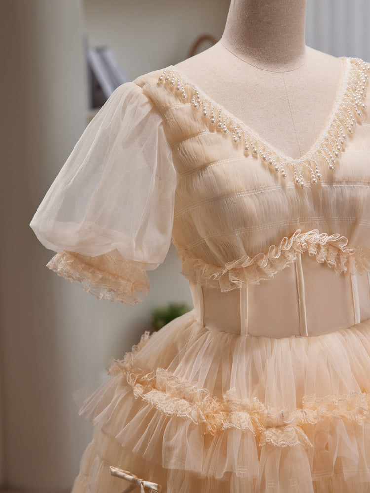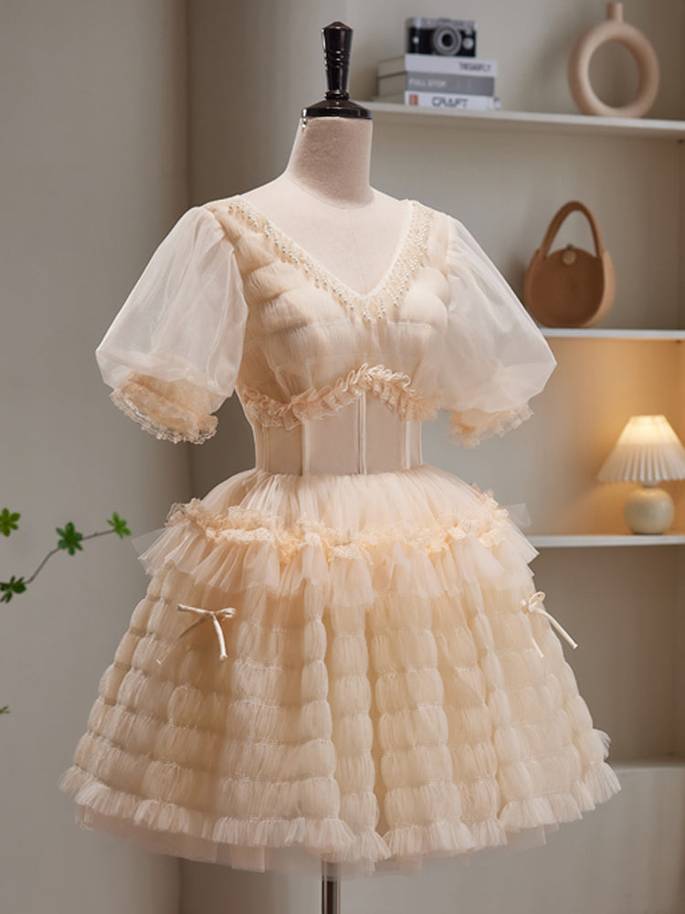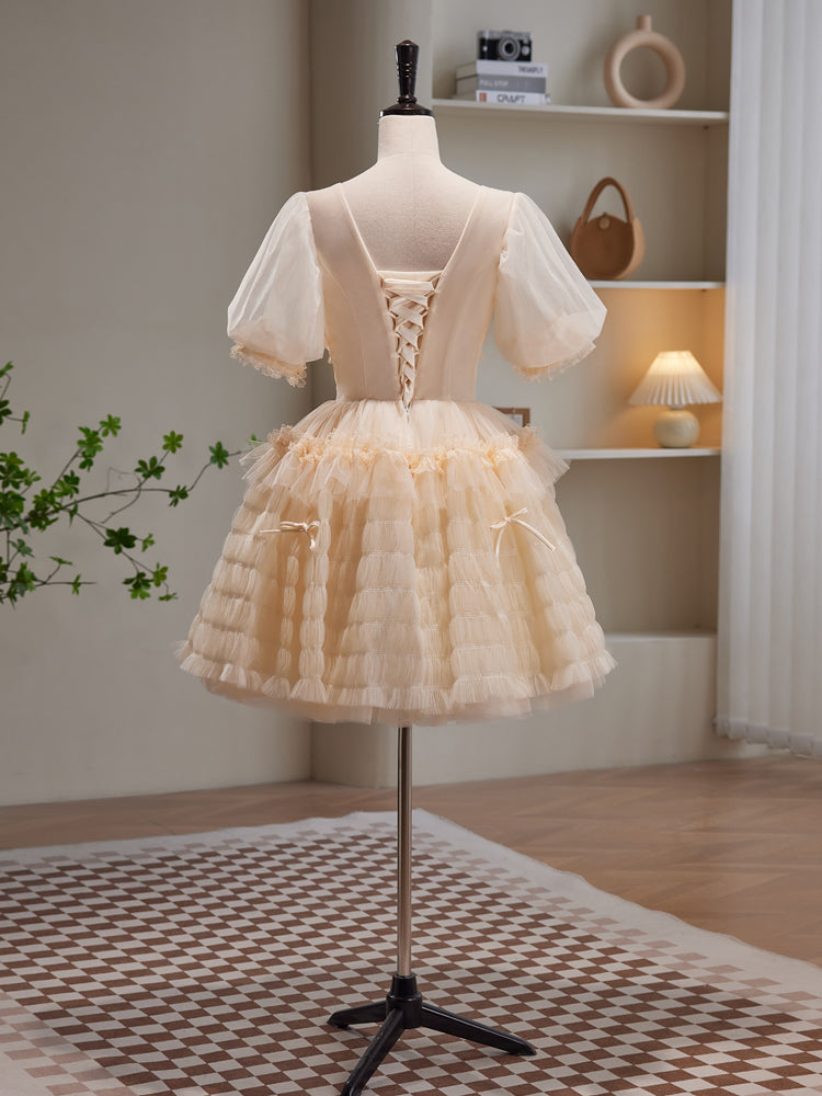 Champagne tulle short prom dress, champagne tulle homecoming dress?FD028