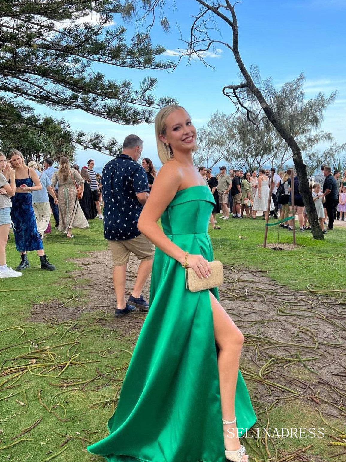 This dress is truly stunning, with its satin fabric, plunging neckline, and simple high slit design. The dress's sleek lines and flattering fit exude a sense of elegance and luxury, making it the perfect choice for any special occasion.
