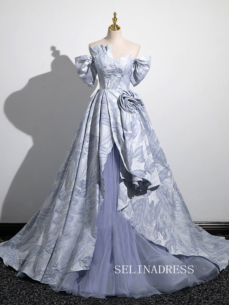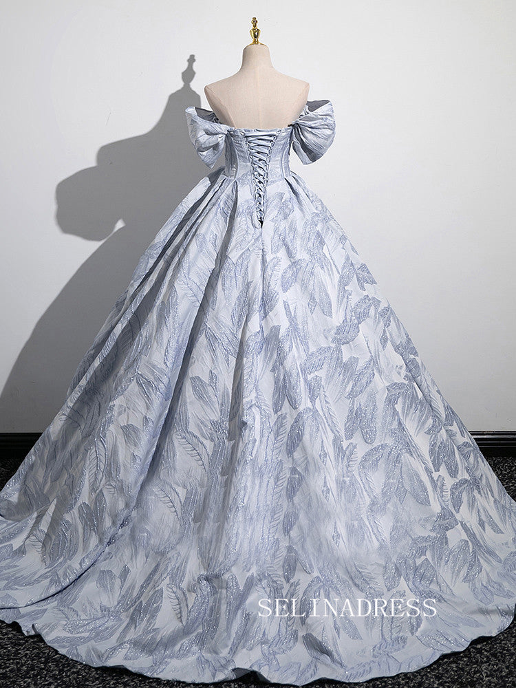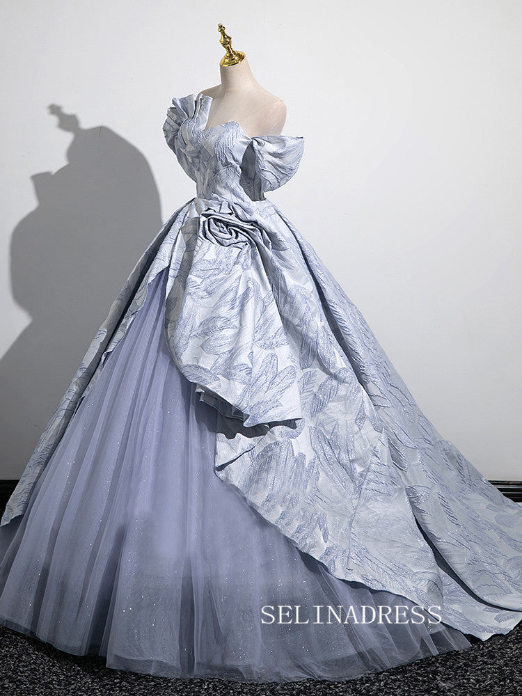 This SELINADRESS gown captivates with its ethereal lavender hue and intricate floral embroidery. The voluminous skirt and structured bodice, adorned with a graceful bow at the shoulder, exude elegance and sophistication. Crafted from soft, lustrous fabric, it's a dreamy choice for any bride.