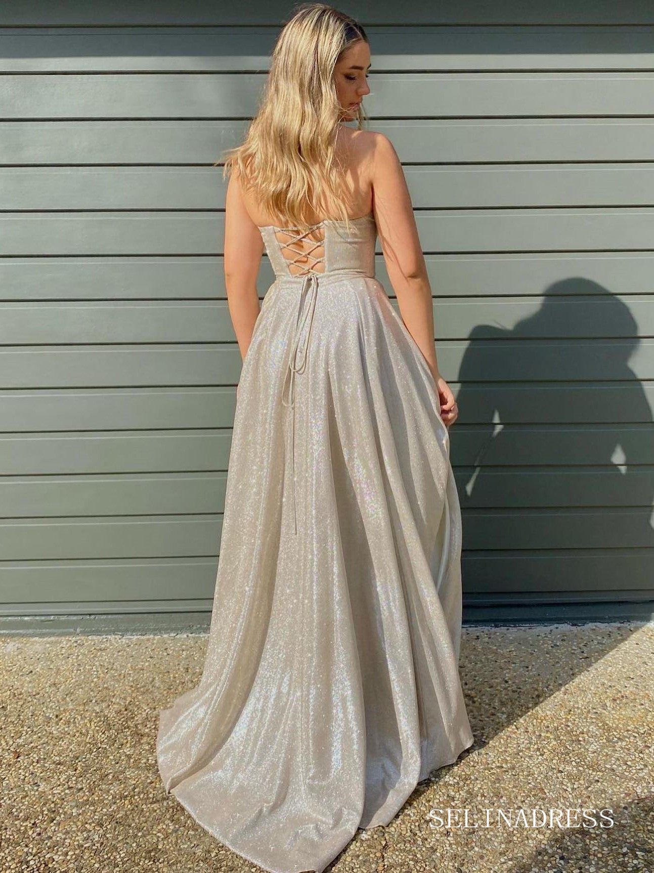 This long prom dress is truly enchanting, with its sweetheart neckline and sparkling design. The dress's fitted silhouette and smooth fabric exude a sense of elegance and luxury, making it the perfect choice for any special occasion.