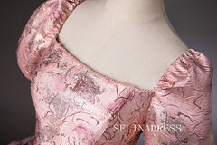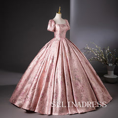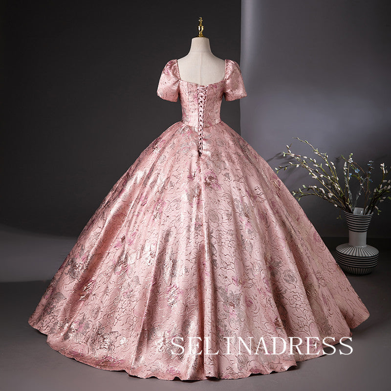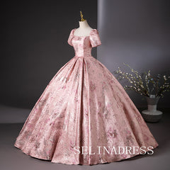 This pink floral ball gown by SELINADRESS is an elegant choice for any formal occasion. The intricate floral pattern adds a touch of nature's beauty, while the high neck and voluminous skirt create a sophisticated look. Perfect for making a statement and feeling like a princess.