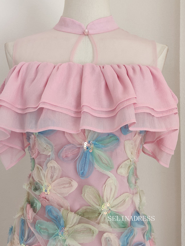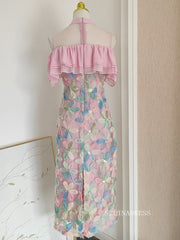 Chic Sheath/Column High Neck Beautiful Short Prom Dress Pink Homecoming Graduation Dresses KTS039