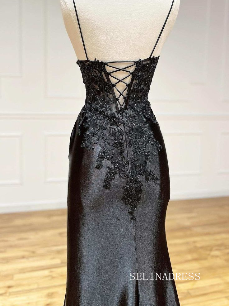 This V-Neck Black Sheer Lace Corset Mermaid Prom Dress is a stylish and elegant formalwear option. It features a v-neckline, spaghetti straps, sheer lace corset bodice, and a thigh-length slit with appliques for an extra touch of glamour. Perfect for any occasion!