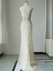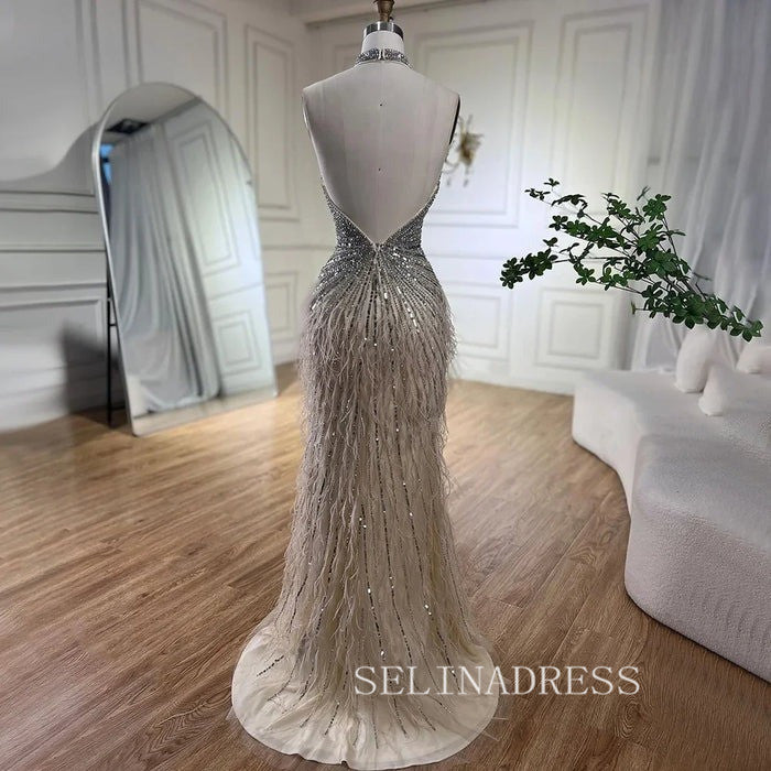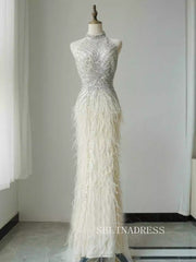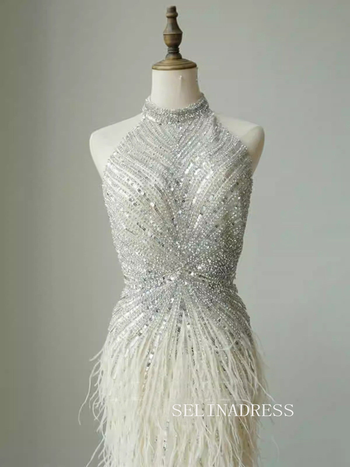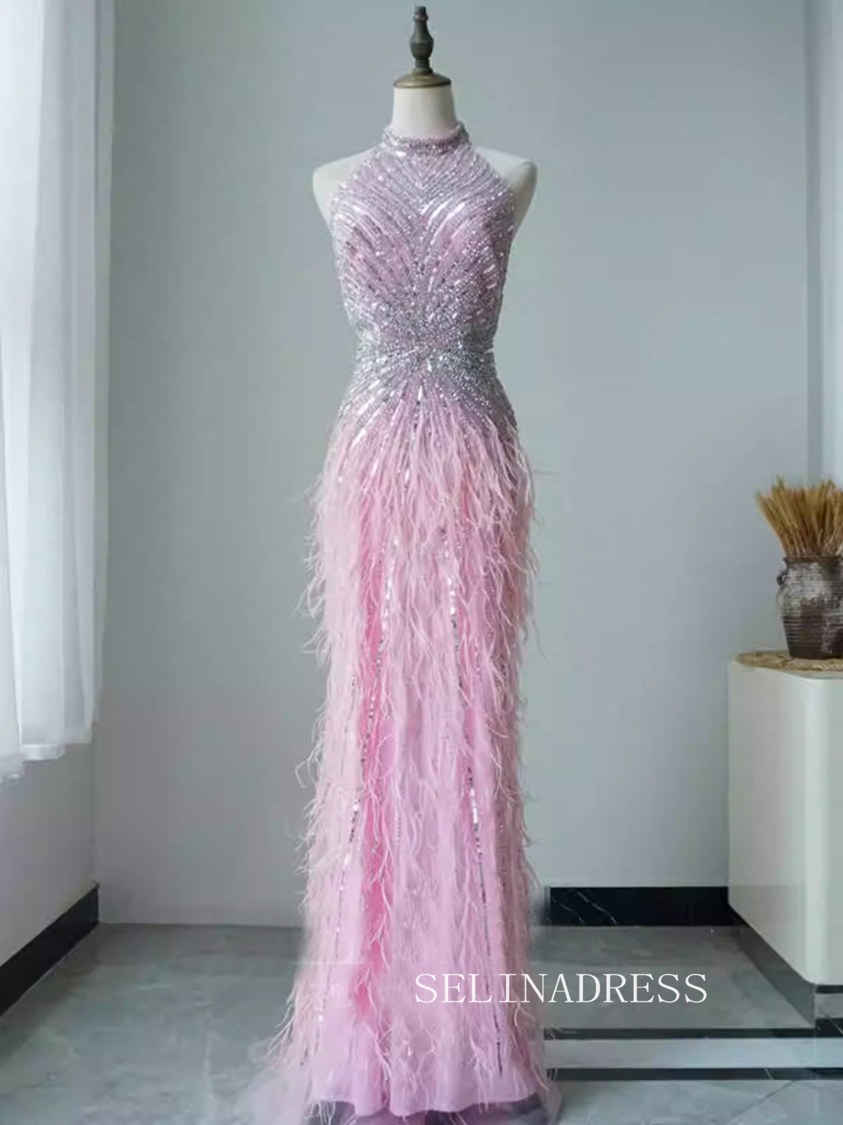 This SELINADRESS Pink Feathered Mermaid Evening Dress is a captivating choice for formal occasions. The tight bodice adorned with sequins and feathers adds elegance, while the fluffy skirt in gradient pink creates a dramatic effect. Stand out in any event with this luxurious and sophisticated gown.