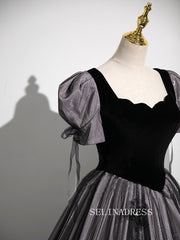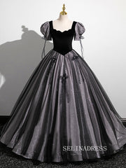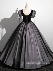 This elegant SELINADRESS gown boasts a stunning fusion of black and grey hues, adorned with sparkling sequins that catch the light. Featuring a voluminous skirt and puffy sleeves, it exudes sophistication and glamour. The black neckline accents the silhouette, creating a timeless piece that captures the essence of elegance.