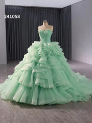 This green sweetheart multi-layered tulle ball gown wedding dress 241058 is an exquisite choice for your special occasion. The gradient color adds depth, while the beadwork at the bodice enhance elegance. The fluttering skirt adds volume and grace, making you feel like a fairy tale princess.