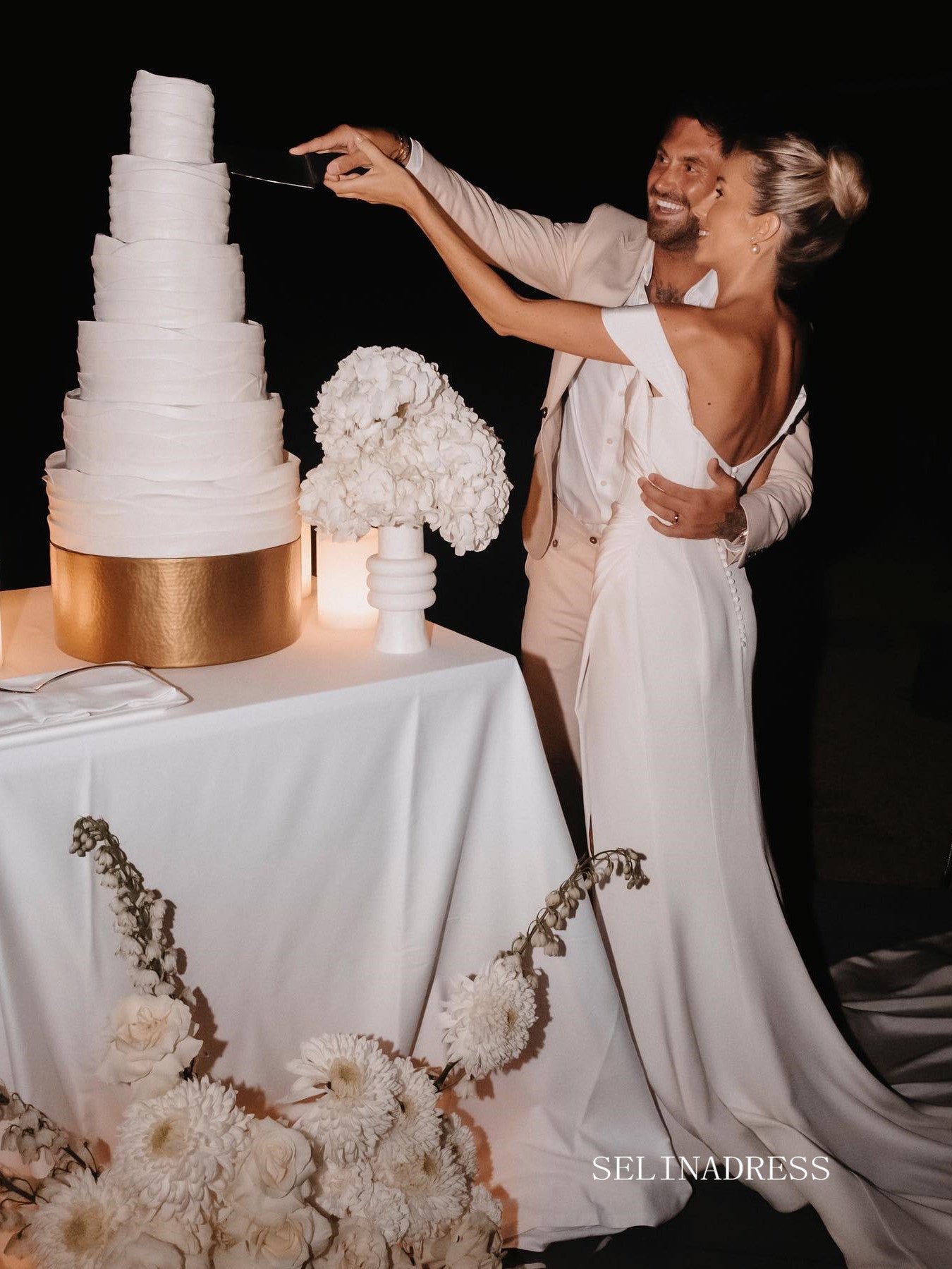 The satin has this gorgeous subtle sheen that caught the light beautifully. What really surprised me was how comfortable the cut outs were, danced all night without any awkward adjusting!