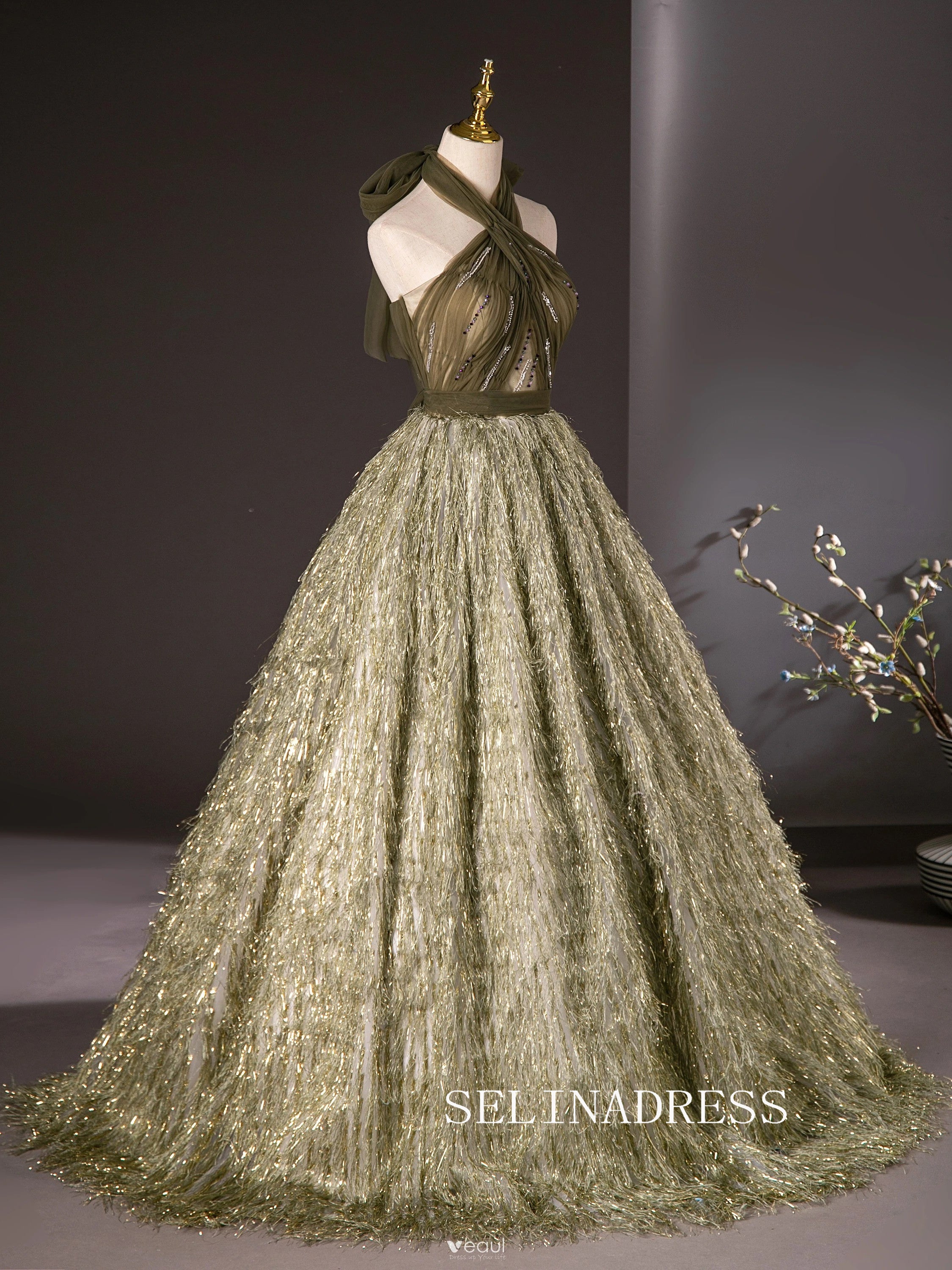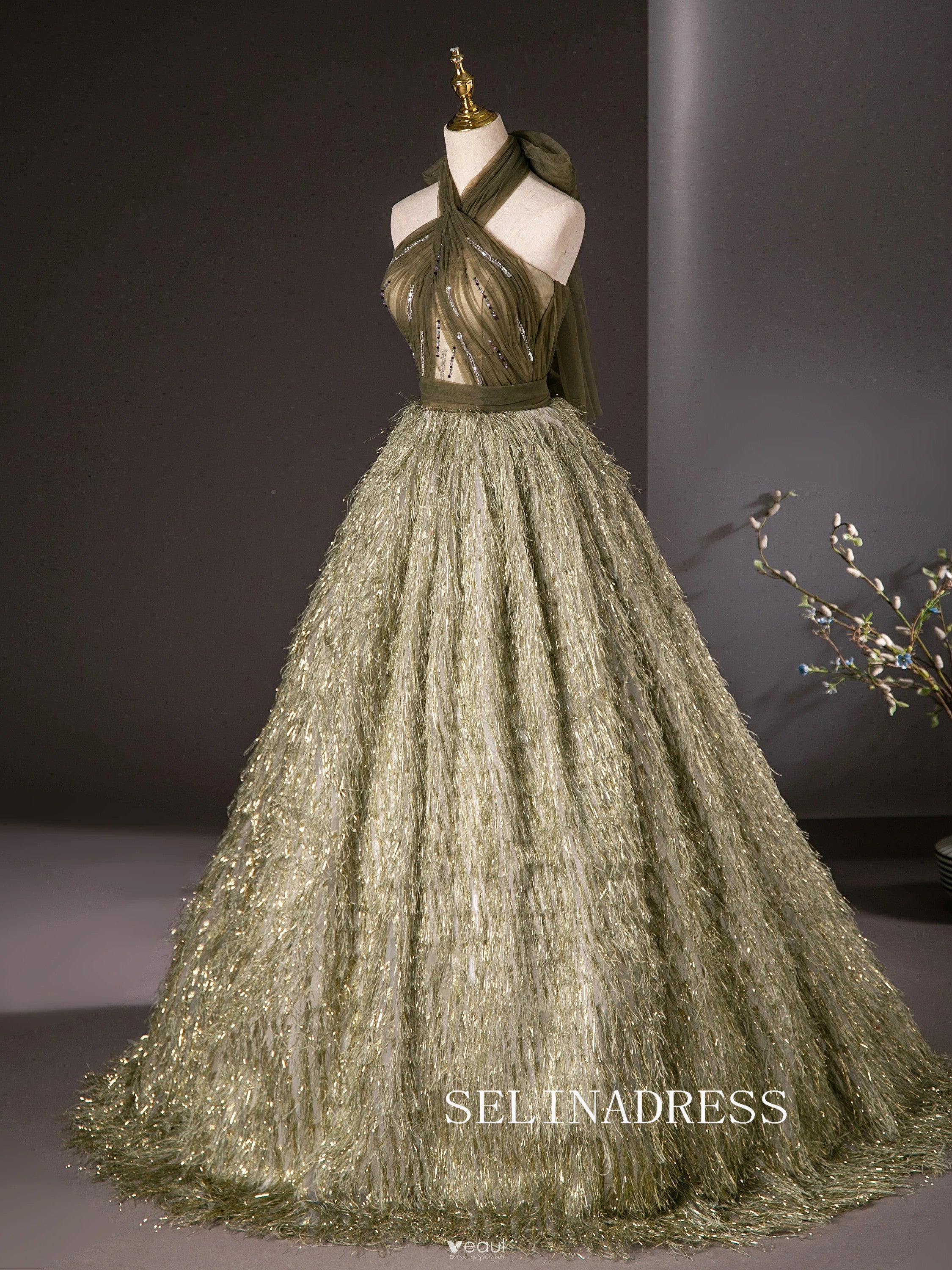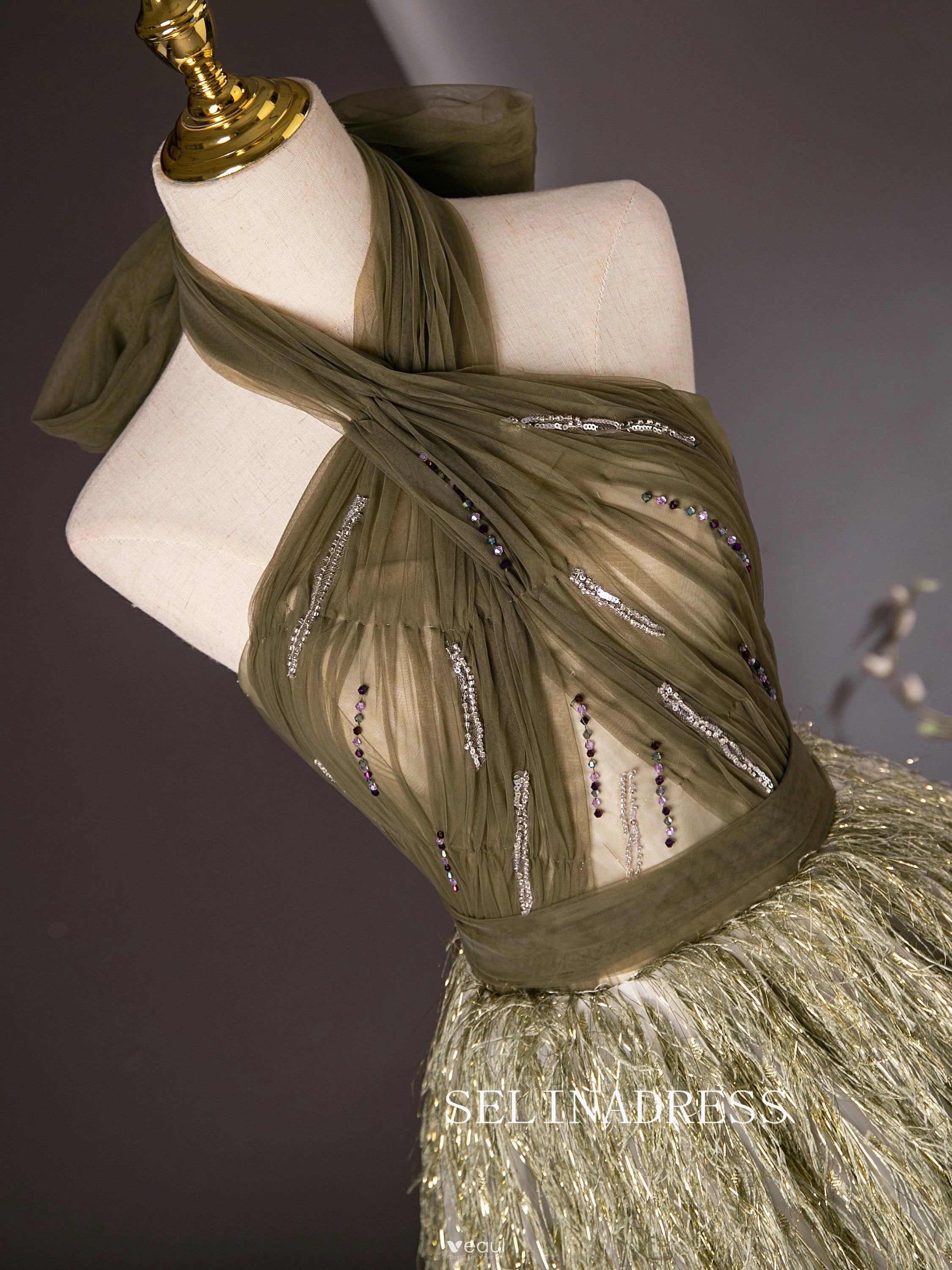 This green evening gown, adorned with VODI's unique design, is a magnificent choice for any grand occasion. The metallic fabric adds a touch of luxury, while the crossed neckline and high waistline accentuate your figure. The flowing skirt ensures elegance and grace, making you stand out in any event.
