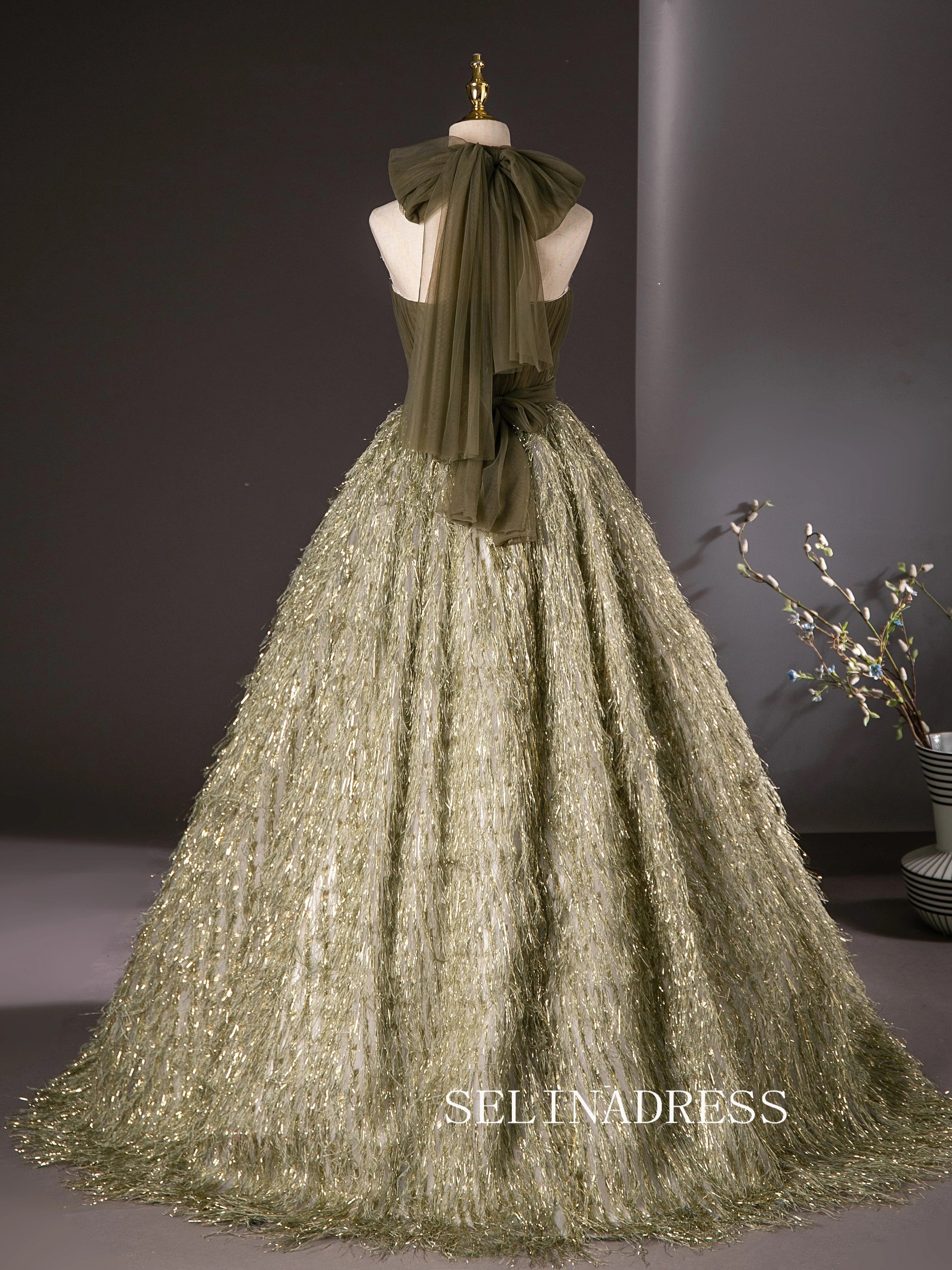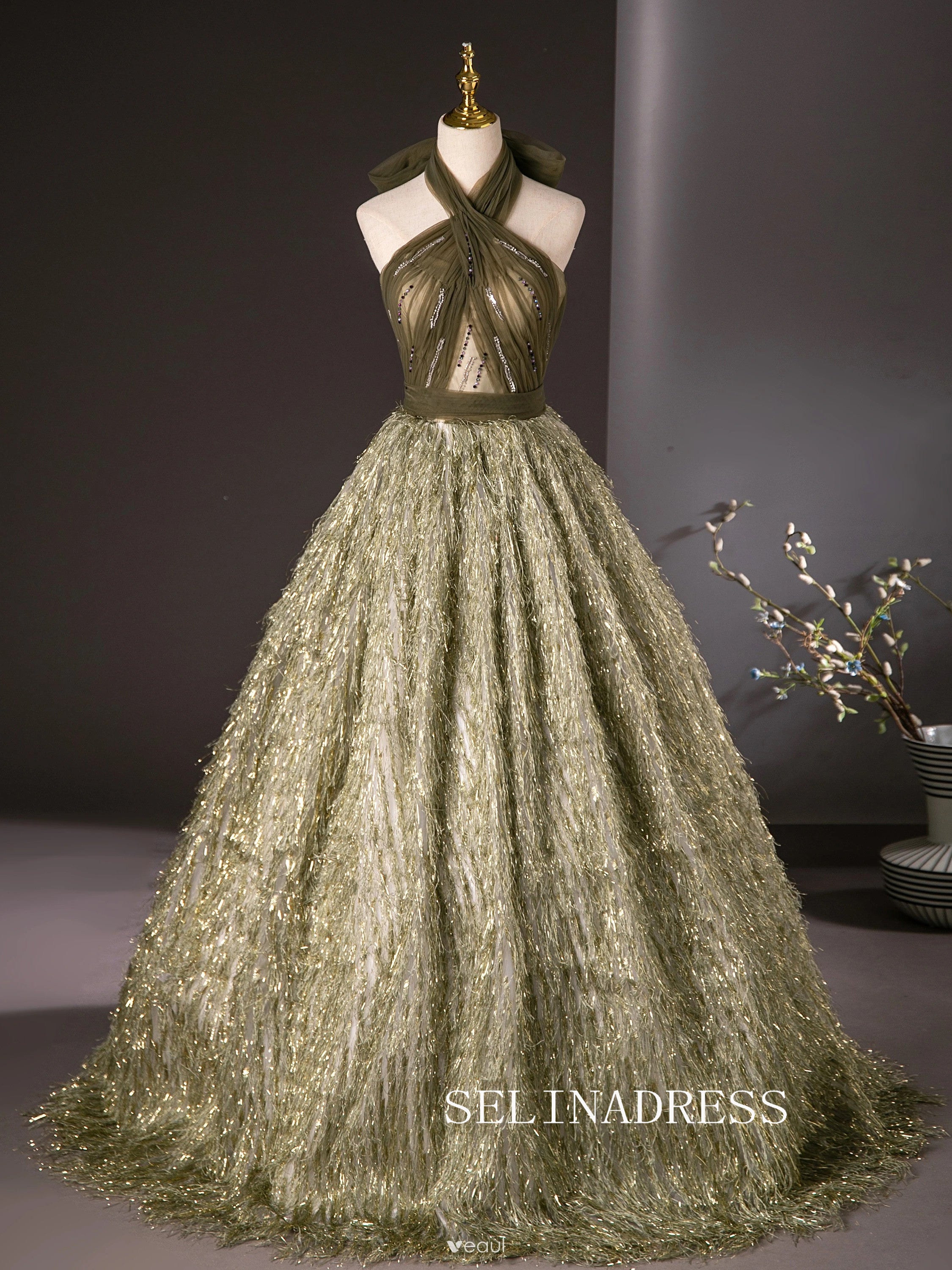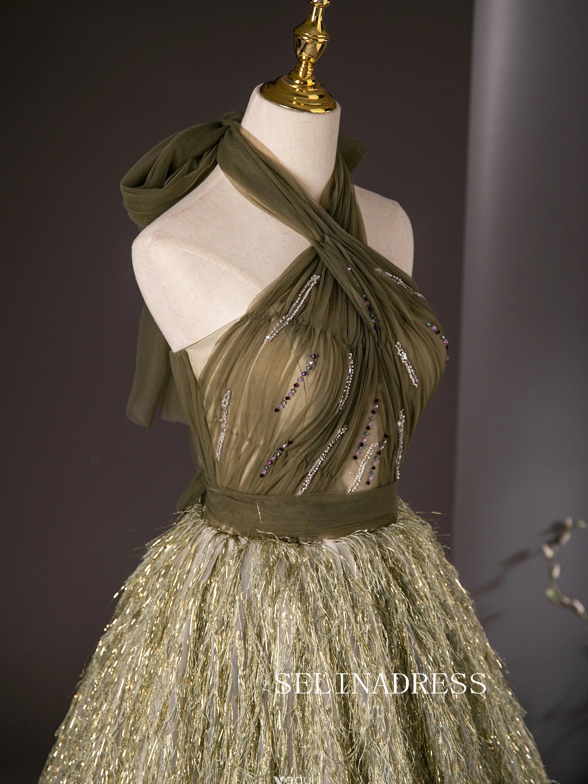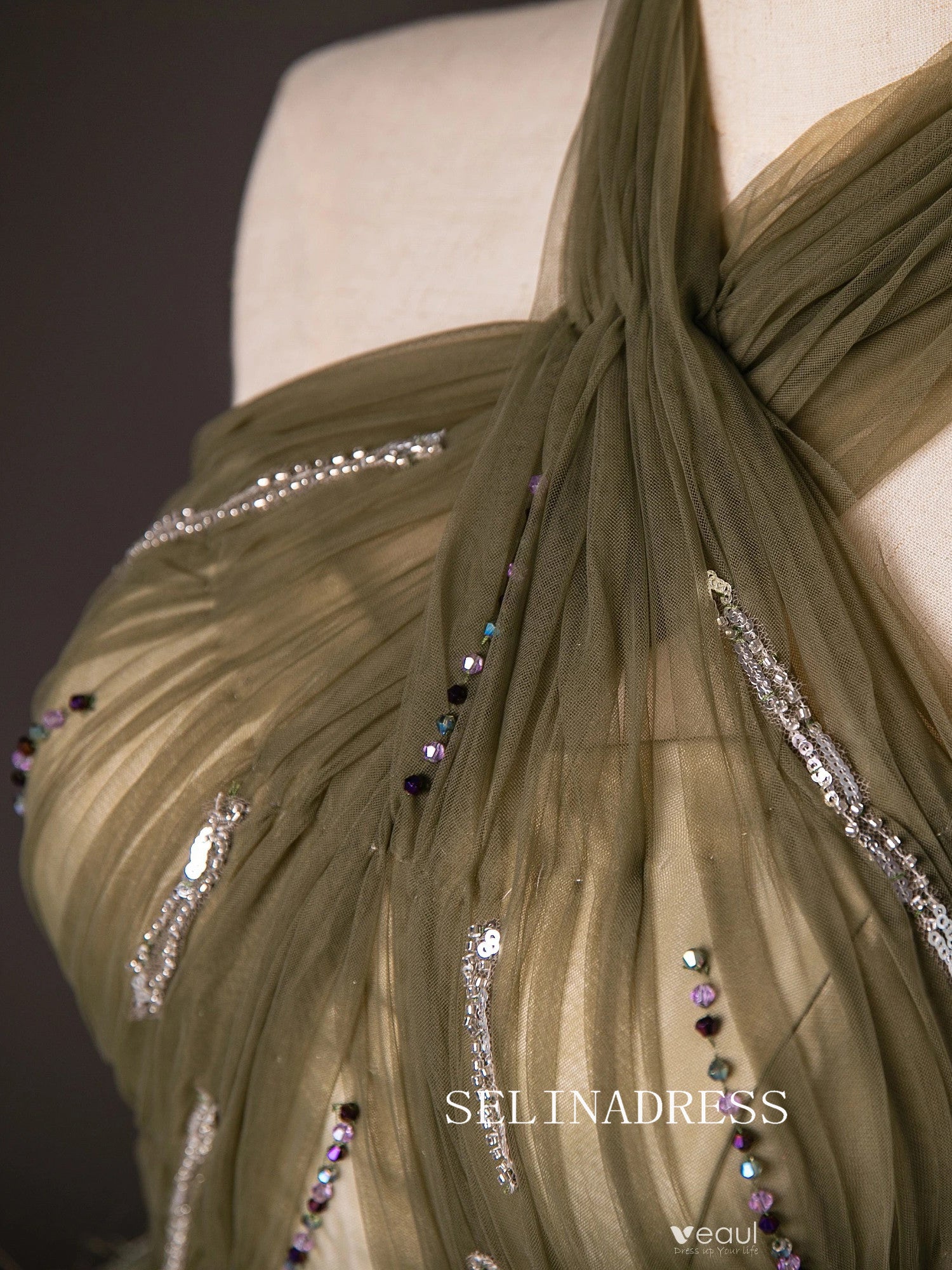 This green evening gown, adorned with VODI's unique design, is a magnificent choice for any grand occasion. The metallic fabric adds a touch of luxury, while the crossed neckline and high waistline accentuate your figure. The flowing skirt ensures elegance and grace, making you stand out in any event.
