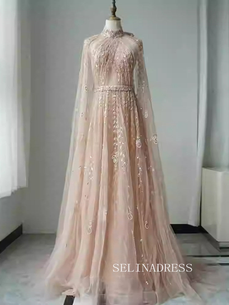 This SELINADRESS Elegant Beaded Evening Dress is a charming choice for formal events. The pale pink hue adds a touch of sweetness, while the fine beading and sequins create a dazzling effect. The A-line skirt with layered chiffon adds grace and flow, making you stand out in elegance.
