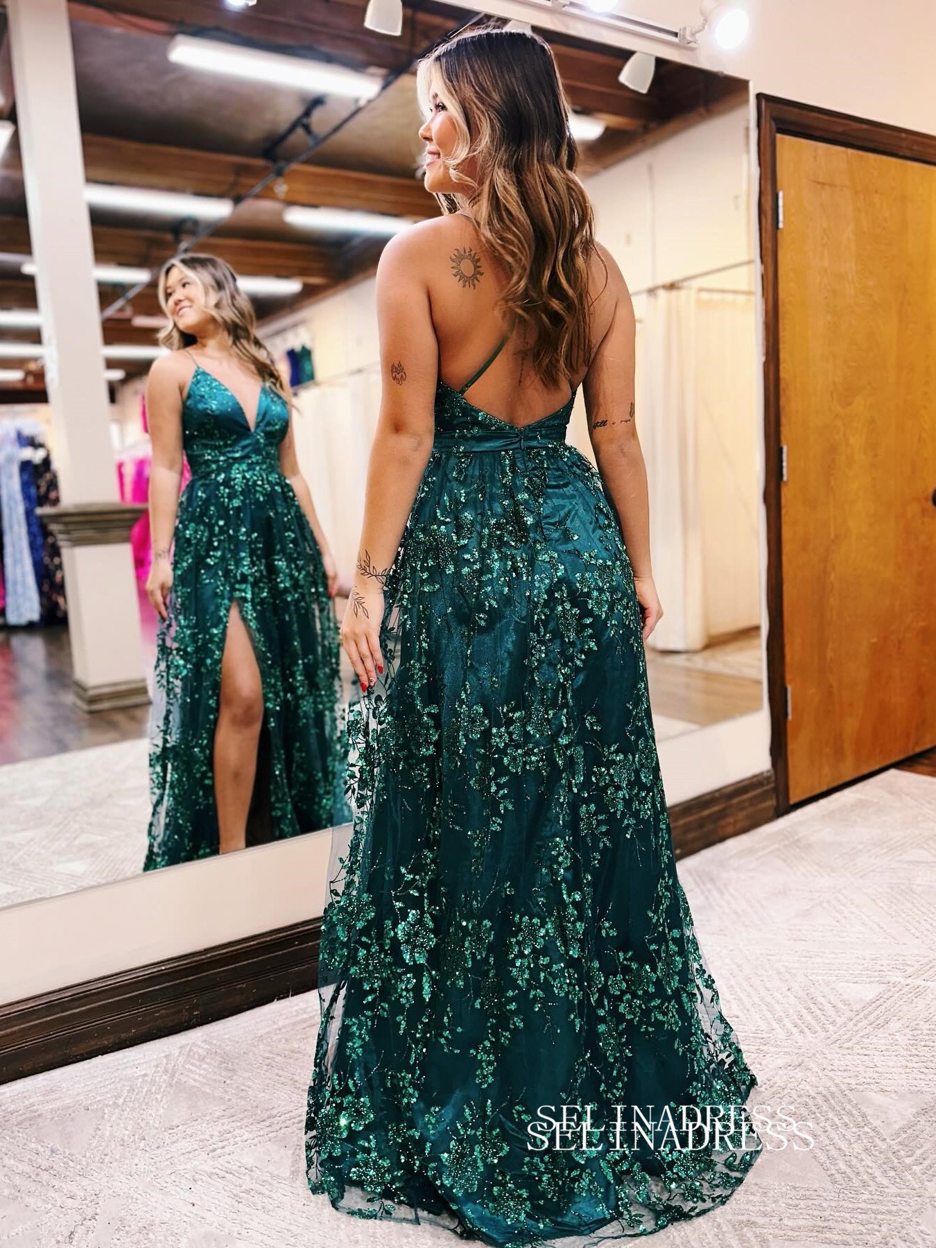 This stunning A-line lace V-neck sleeveless prom dress will elevate your prom look. Intricate appliqués and an elegant split add a touch of romance to the classic silhouette. Be the belle of the ball and make a fashion statement in this beautiful gown.