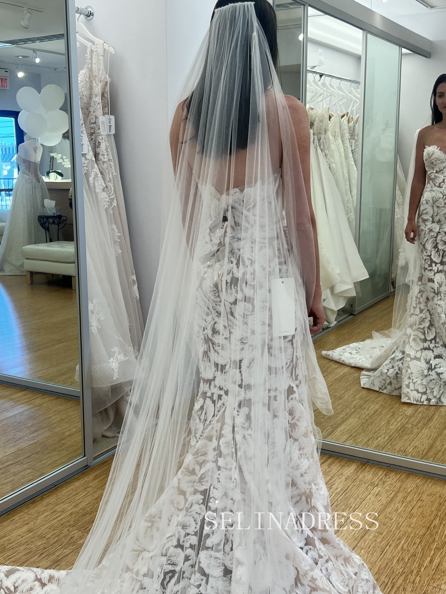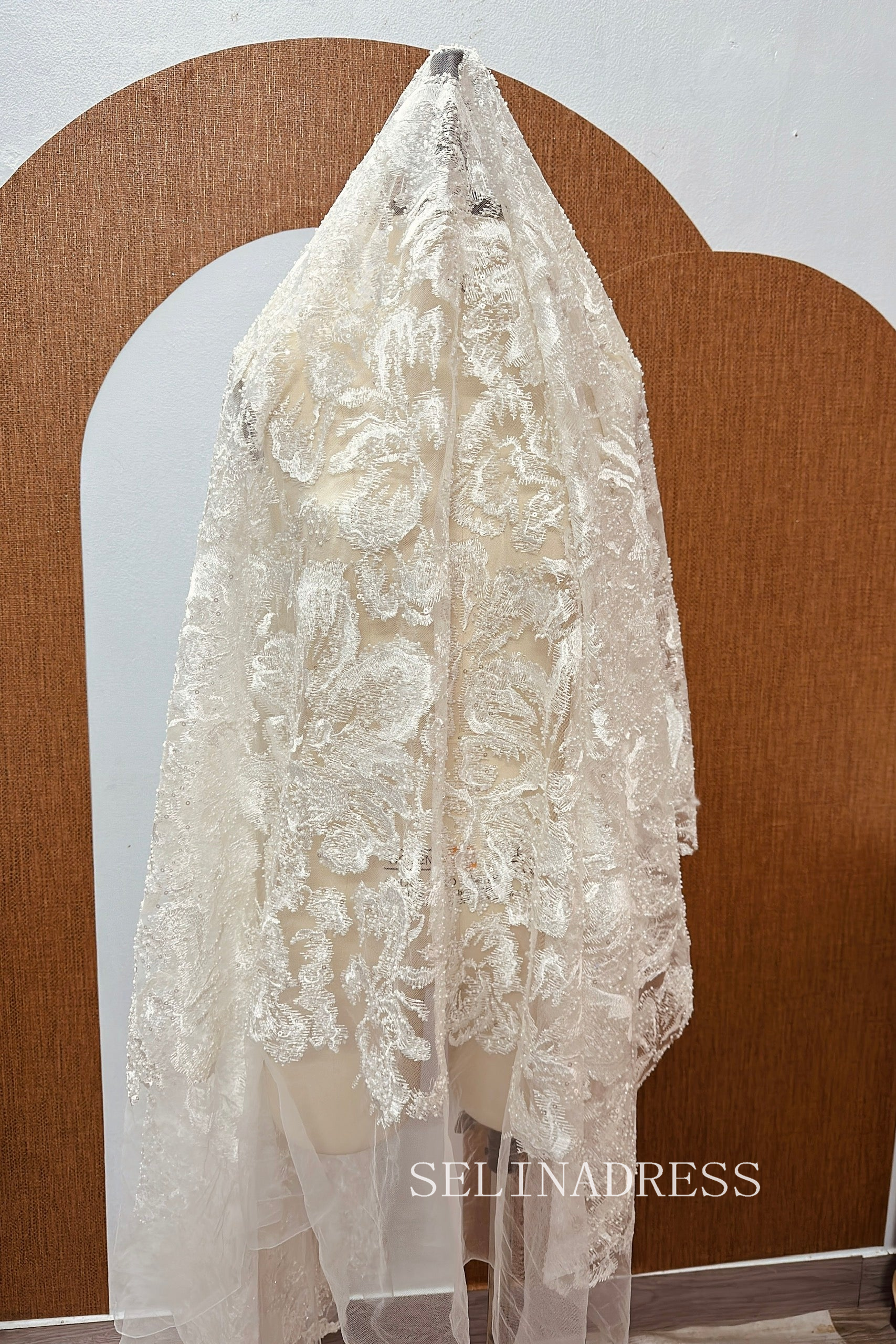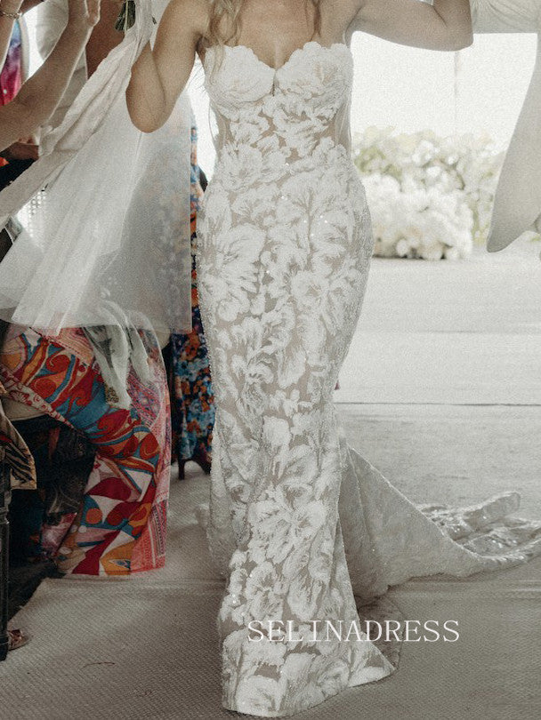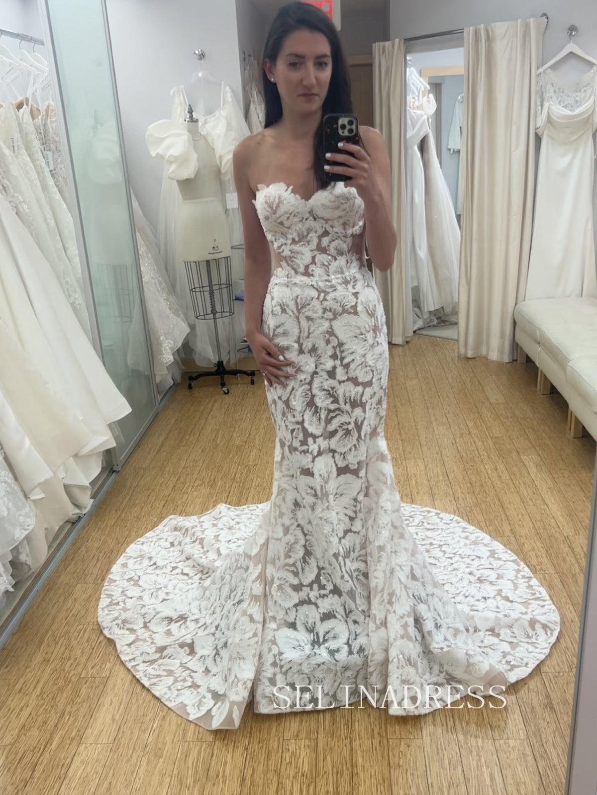 This SELINADRESS White Lace Mermaid Wedding Dress is a captivating choice for your big day. The white hue adds a touch of purity, while the intricate lace appliqué and fitted bodice add a touch of elegance. The flowing skirt adds grace, making you feel like a fairy tale bride.