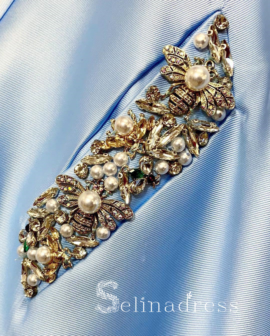 The dress is beautiful! I was pretty skeptical ordering online and not seeing the dress in person before I bought it. Expecting the fabric to be less quality than the photo shows. I’m completely impressed. The dress looks exactly like the photos. The floral appliqué has beautiful bead work. The quality of the materials is perfect. It fits almost perfect. Will have to have mild alterations through the waist line. I will post photos of the dress on because I see no photos have been posted of this dress on someone.