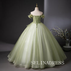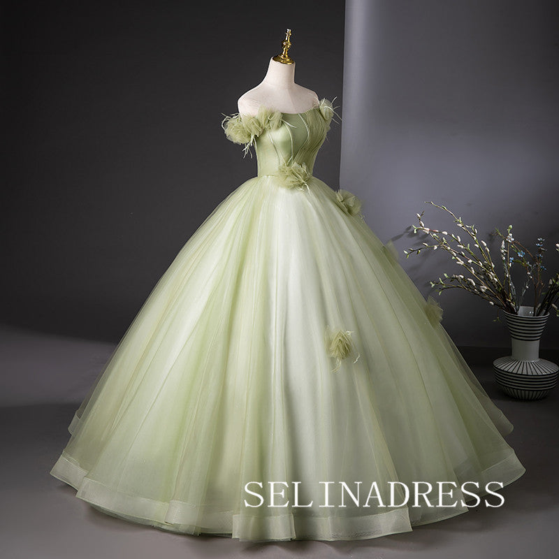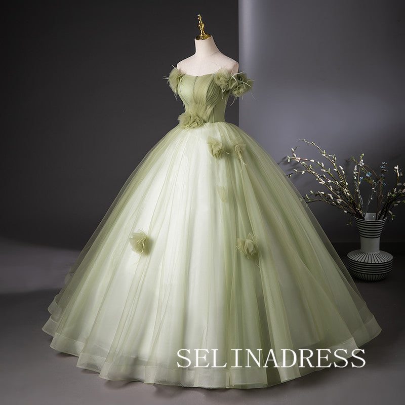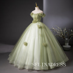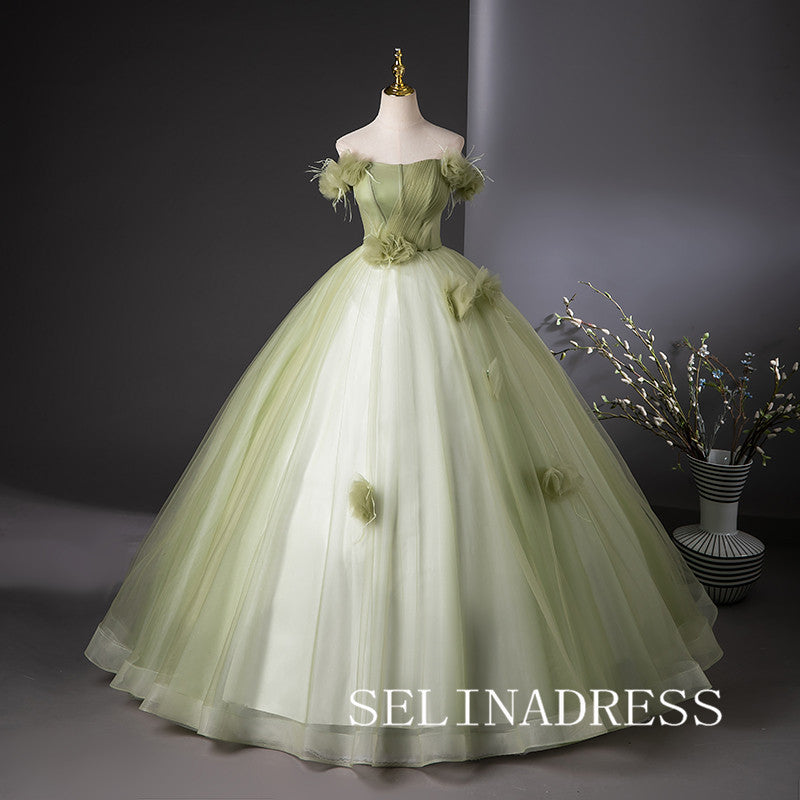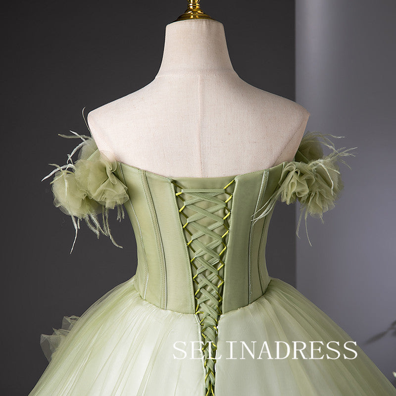 This green off-the-shoulder ball gown by SELINADRESS is a breathtaking choice. The gradient green fabric adds a touch of nature, while the floral shoulder details enhance its elegance. The voluminous skirt adds grace and fluidity, making you feel like a forest fairy on your special day.