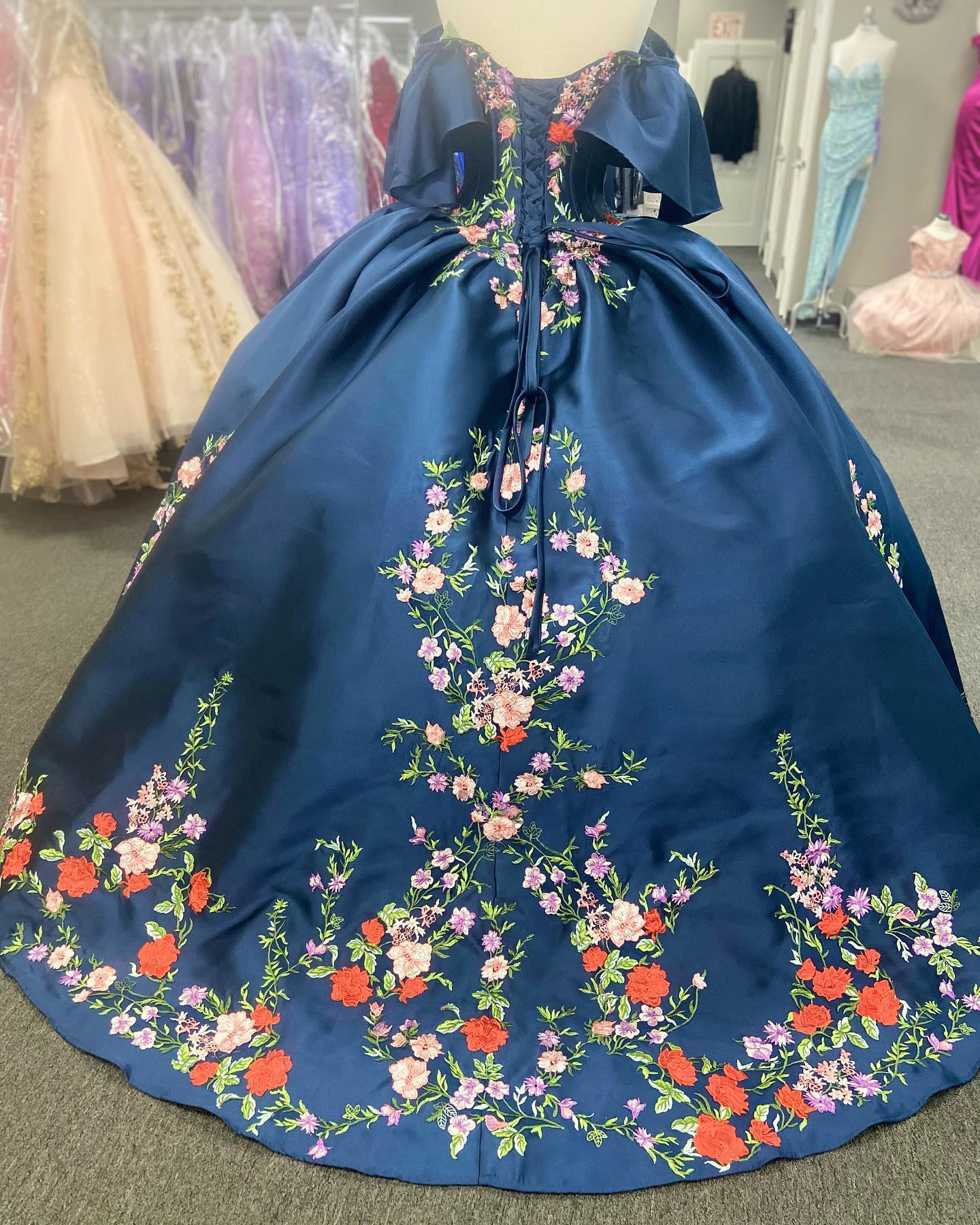 The dress is beautiful! I was pretty skeptical ordering online and not seeing the dress in person before I bought it. Expecting the fabric to be less quality than the photo shows. I’m completely impressed. The dress looks exactly like the photos. The floral appliqué has beautiful bead work. The quality of the materials is perfect. It fits almost perfect. Will have to have mild alterations through the waist line. I will post photos of the dress on because I see no photos have been posted of this dress on someone.