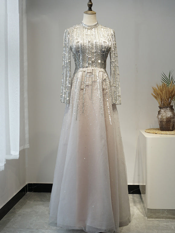 Selinadress Elegant Long Luxury High Neck Long Evening Dress Formal Gowns SC092