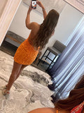 Sooooooooooo cute fits so perfect, the back is a tie so you can adjust how tight or loose you want it, it's a pretty good length about mid thigh.