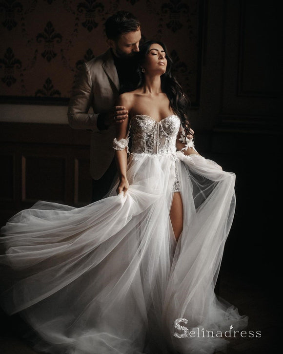 Selinadress illusion Strapless Wedding Dress TikTok Luxury Wedding Gowns SDW004