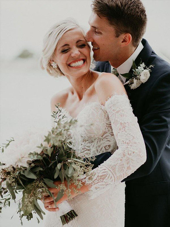 Trumpet/Mermaid Off-the-shoulder Long Sleeve Wedding Dress Bridal Gowns SEW038