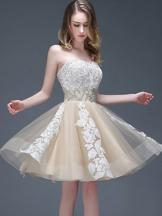 Homecoming Dress Cute Sweetheart Champagne Dress Short Prom Dress Party Dress JK25