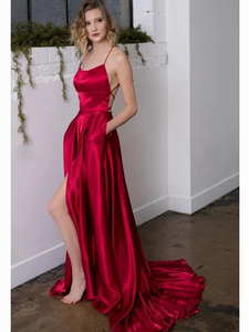 This graceful formal dress is made from elastic satin. It has an A-line style fit with a hidden front slit. Features on this gown include a square neck and lace-up open back, as well as modern pockets. The material has minimal stretch. This formal dress is also available in plus sizes and can be custom made in a wide range of colors. Custom size is recommended, totally free. If you can't find the color you want above, please write your color or your custom made measurements in the checkout step, or send us your color image and measurements through email.