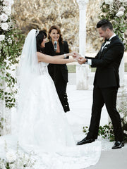 The dress is beautiful! I was pretty skeptical ordering online and not seeing the dress in person before I bought it. Expecting the fabric to be less quality than the photo shows. I’m completely impressed. The dress looks exactly like the photos. The floral appliqué has beautiful bead work. The quality of the materials is perfect. It fits almost perfect. Will have to have mild alterations through the waist line. I will post photos of the dress on because I see no photos have been posted of this dress on someone.