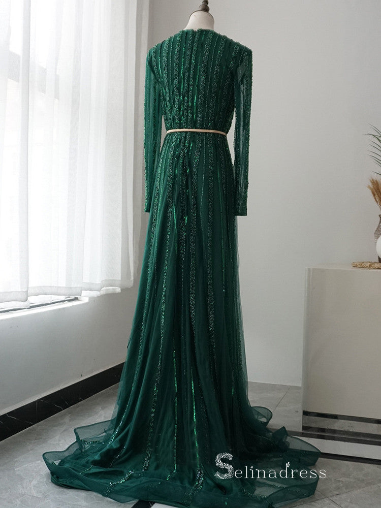 Modest long sleeve formal evening dress.